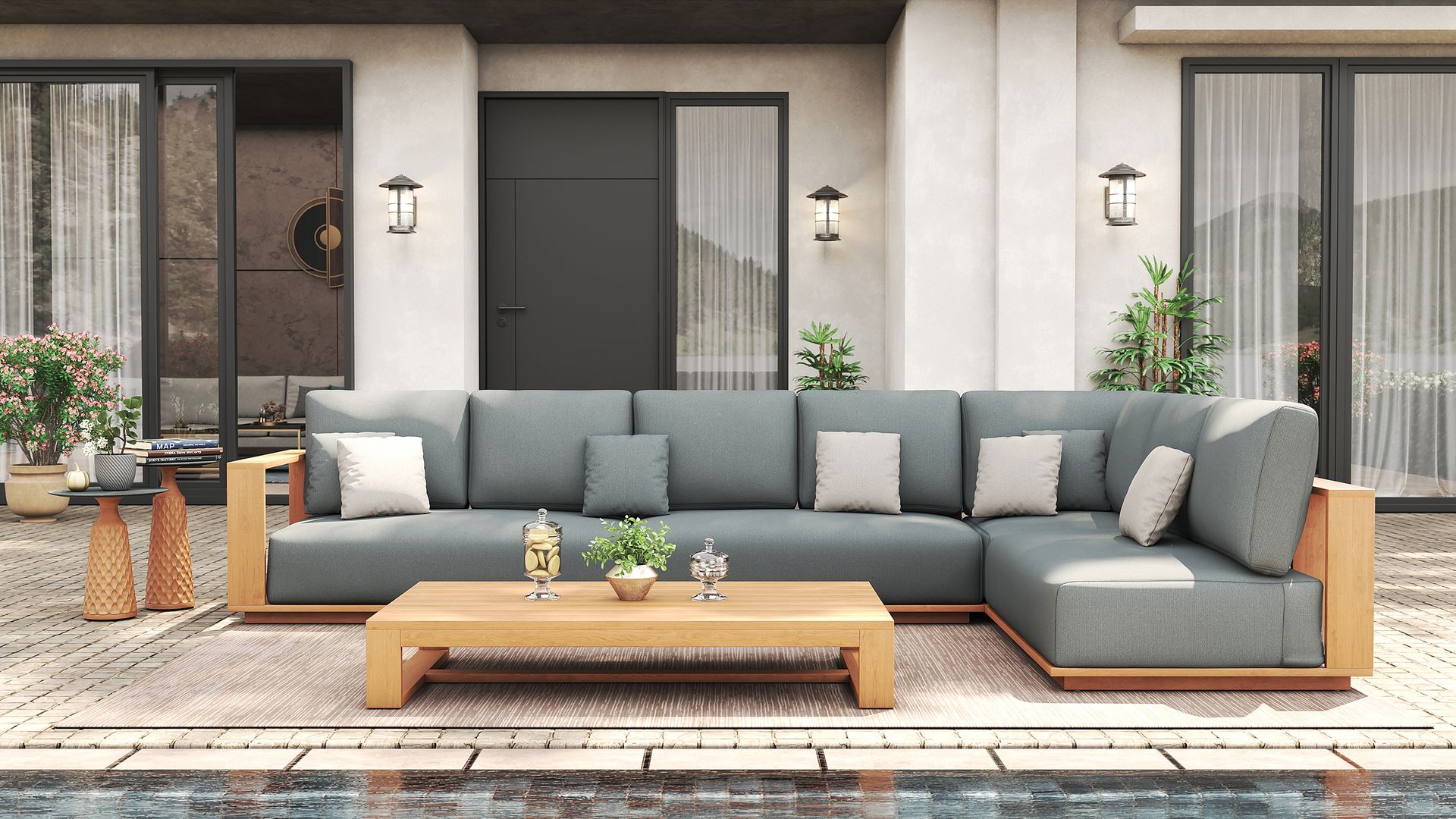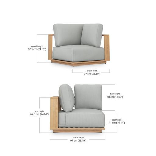 Built on a solid teakwood base and topped with plush, quick-dry cushions, each piece is handcrafted for lasting quality and timeless appeal. The weather-resistant construction makes it perfect for outdoor living, while the premium Sunproof olefin fabric adds a refined finish.