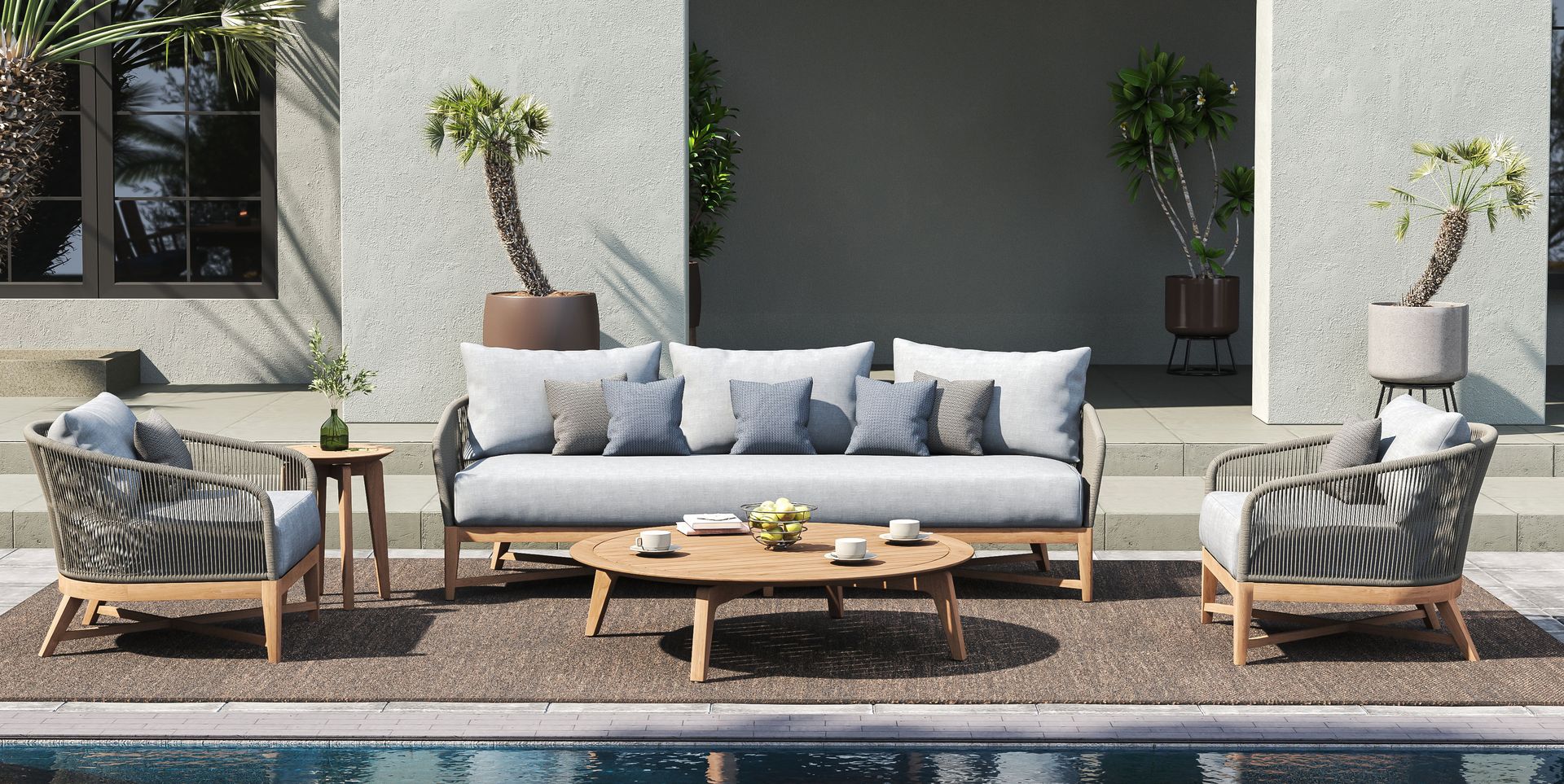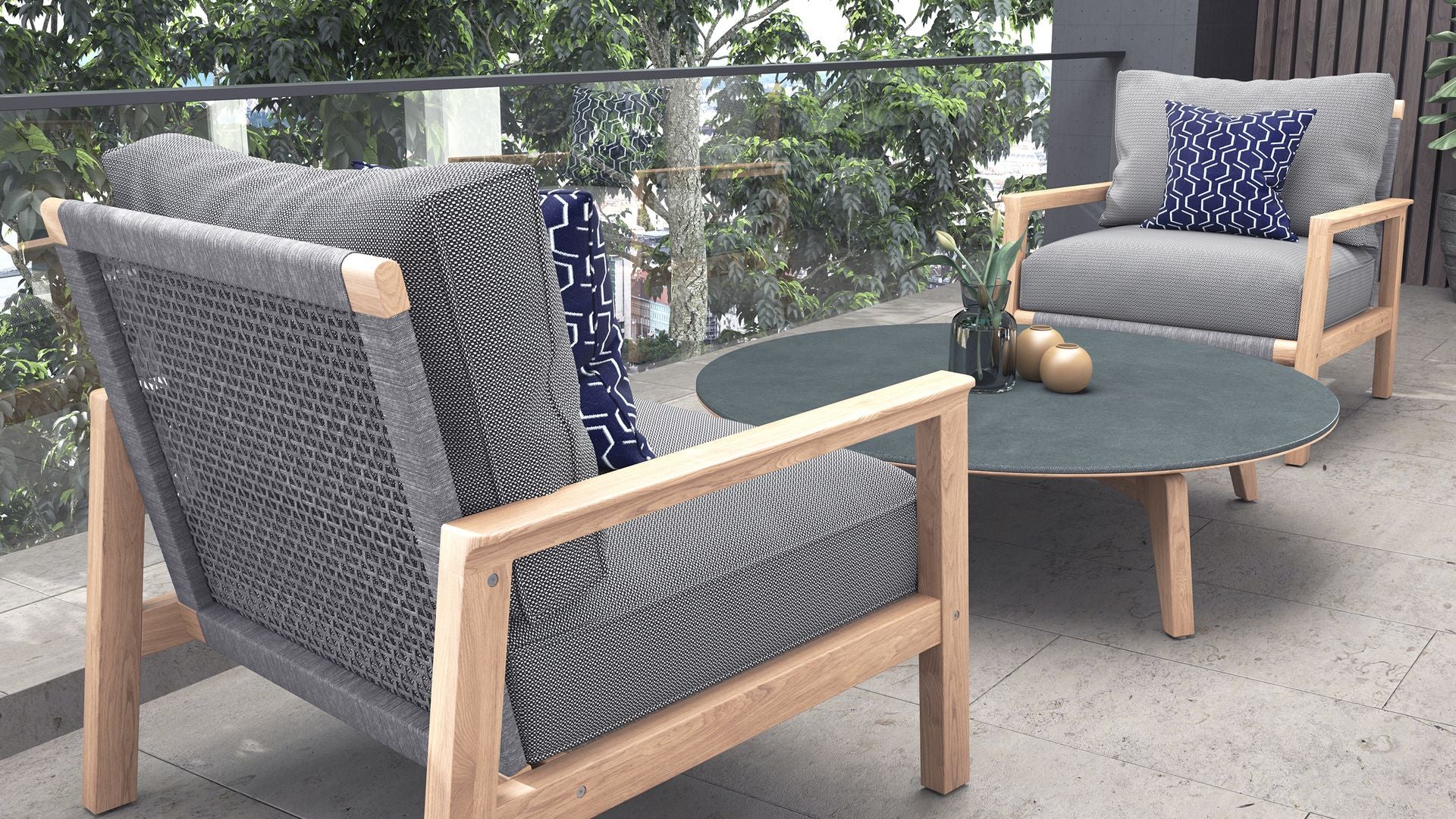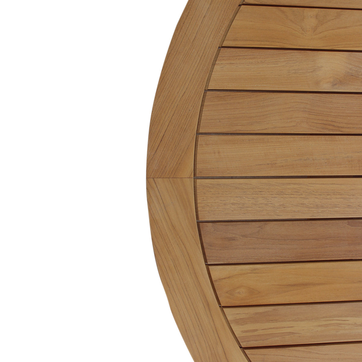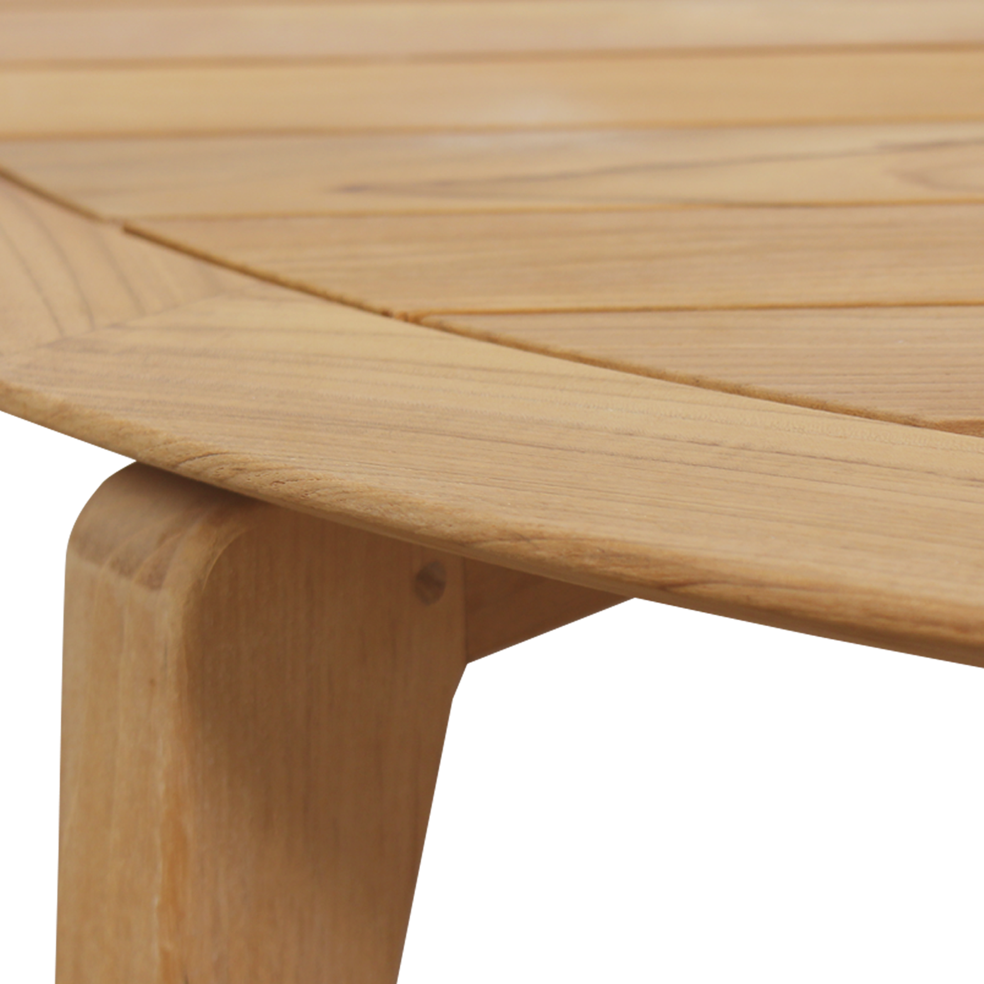 Choose between a solid teak base or a powder-coated stainless steel frame, each paired with your pick of matching teak or premium ceramic top. The ceramic surface adds a refined matte texture while standing up to the elements with ease. It is stain-resistant, scratch-proof and unfazed by the sun.