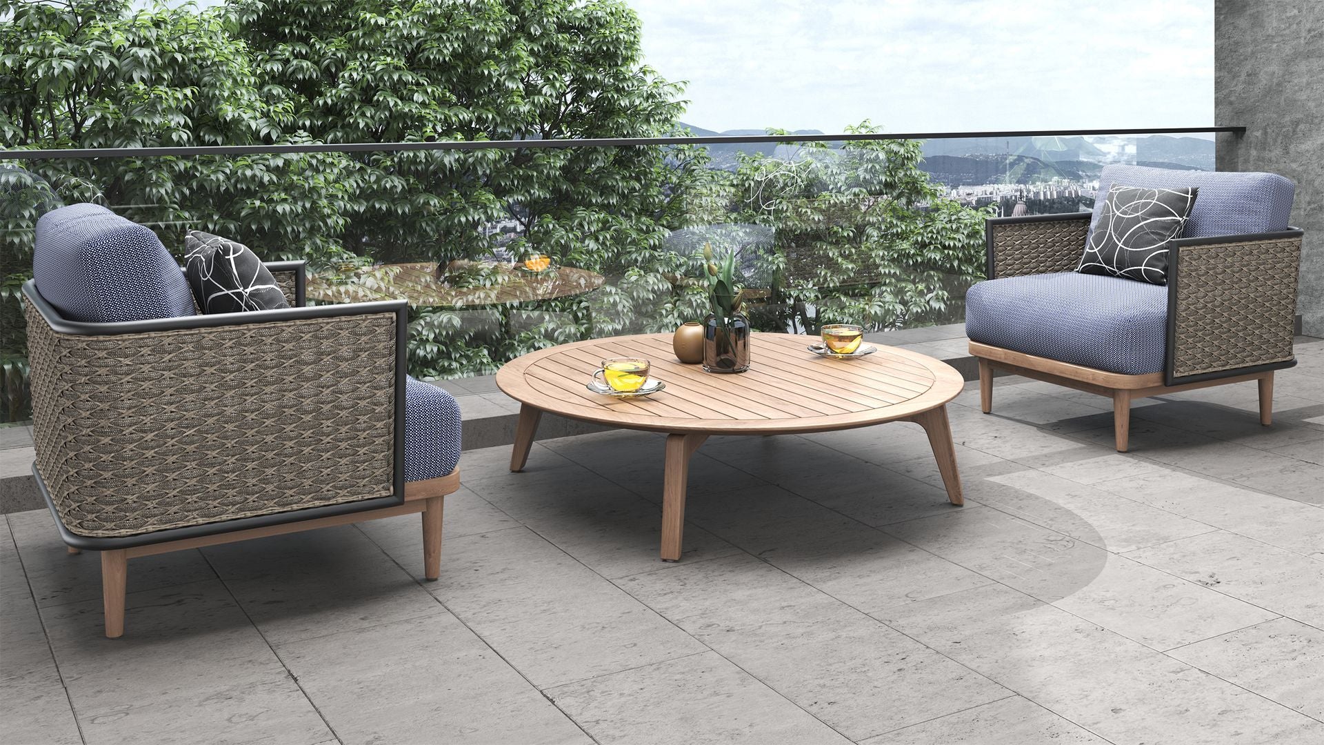 The dorus round coffee table brings the same laid-back elegance as its rectangular sibling, but in a softer, more circular silhouette. At 1.2 metres wide, it's the perfect centrepiece for intimate gatherings or sprawling outdoor lounges.