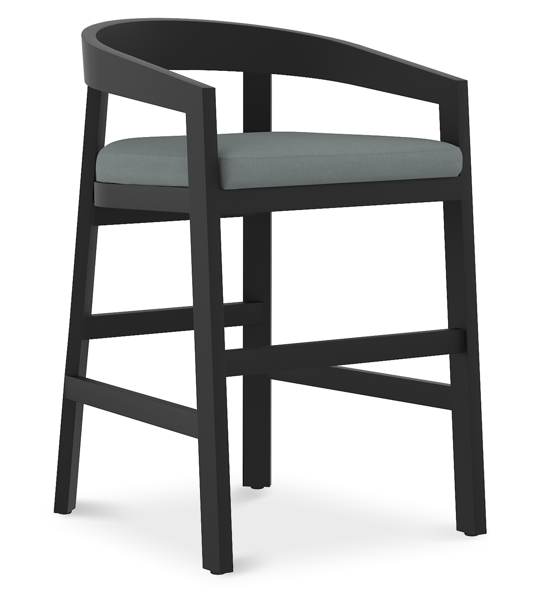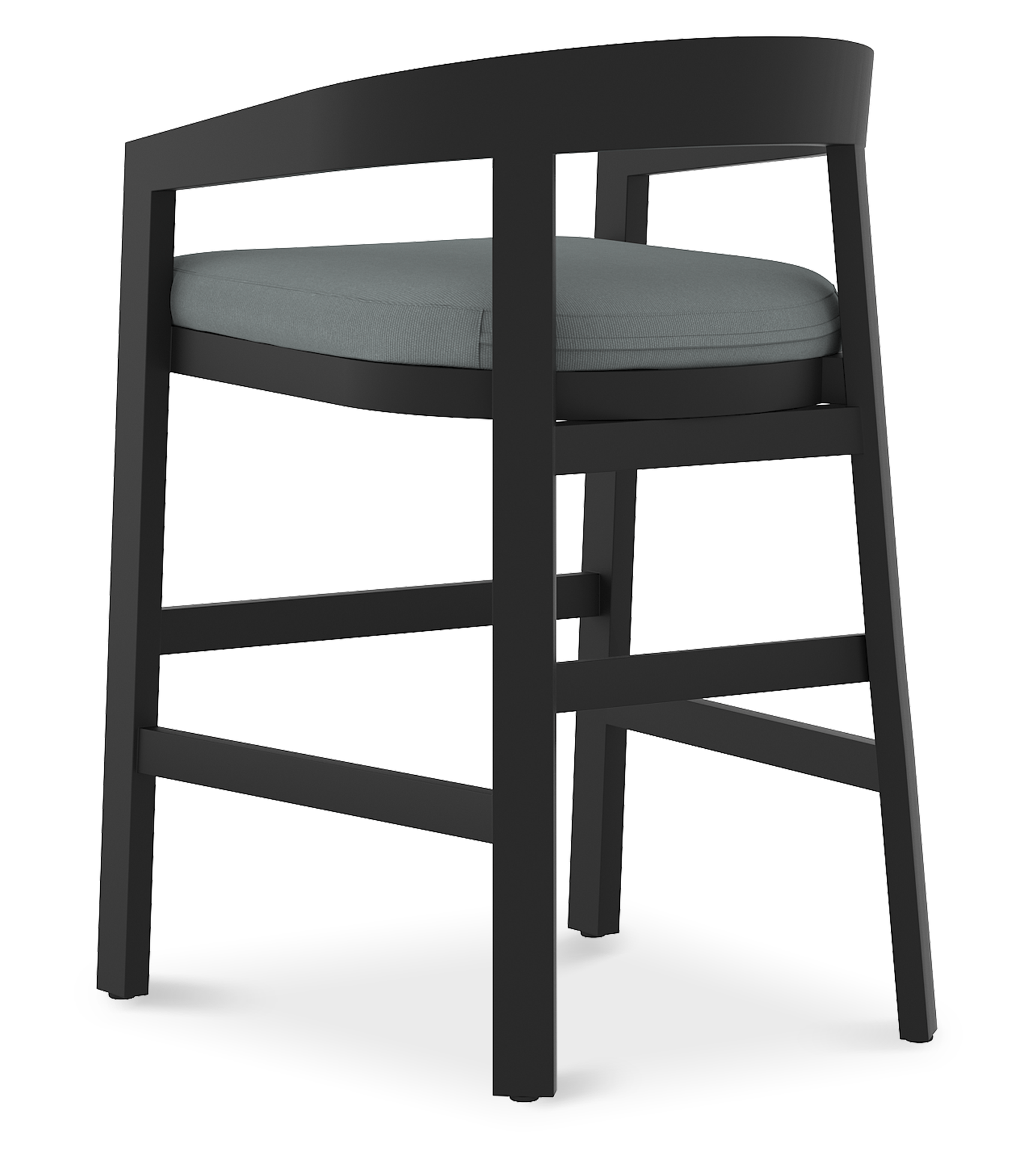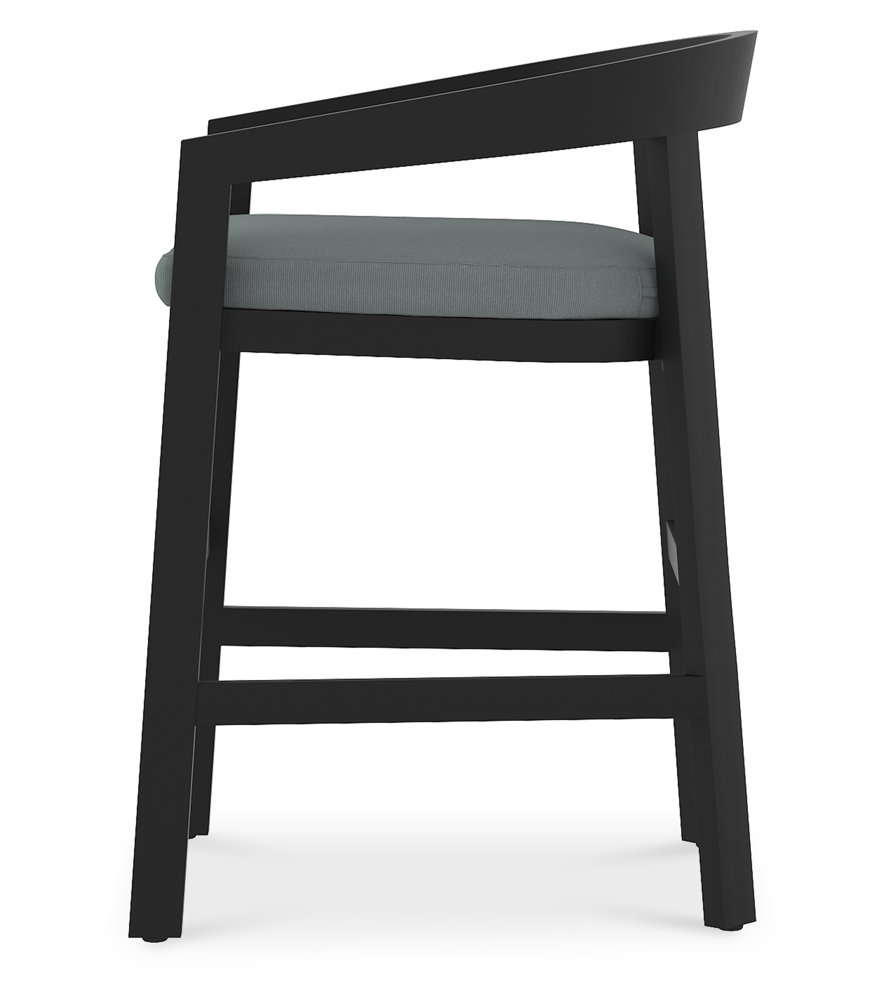 It shares the same ergonomic curves and scooped seat as its teak sibling, but swaps timber for a modern matte finish that's built for high performance. With sloped armrests, a supportive footrest, and a removable cushion, it brings comfort to every casual meal or sunset drink. Refined design, tough exterior, easy charm.