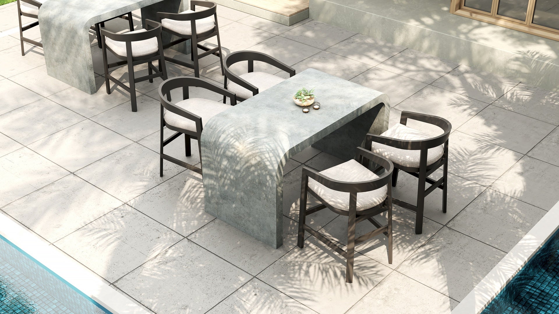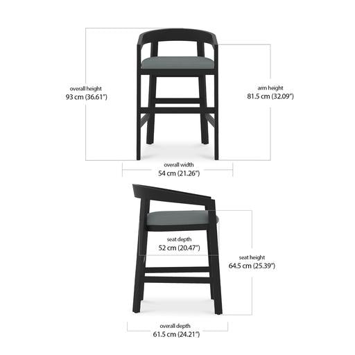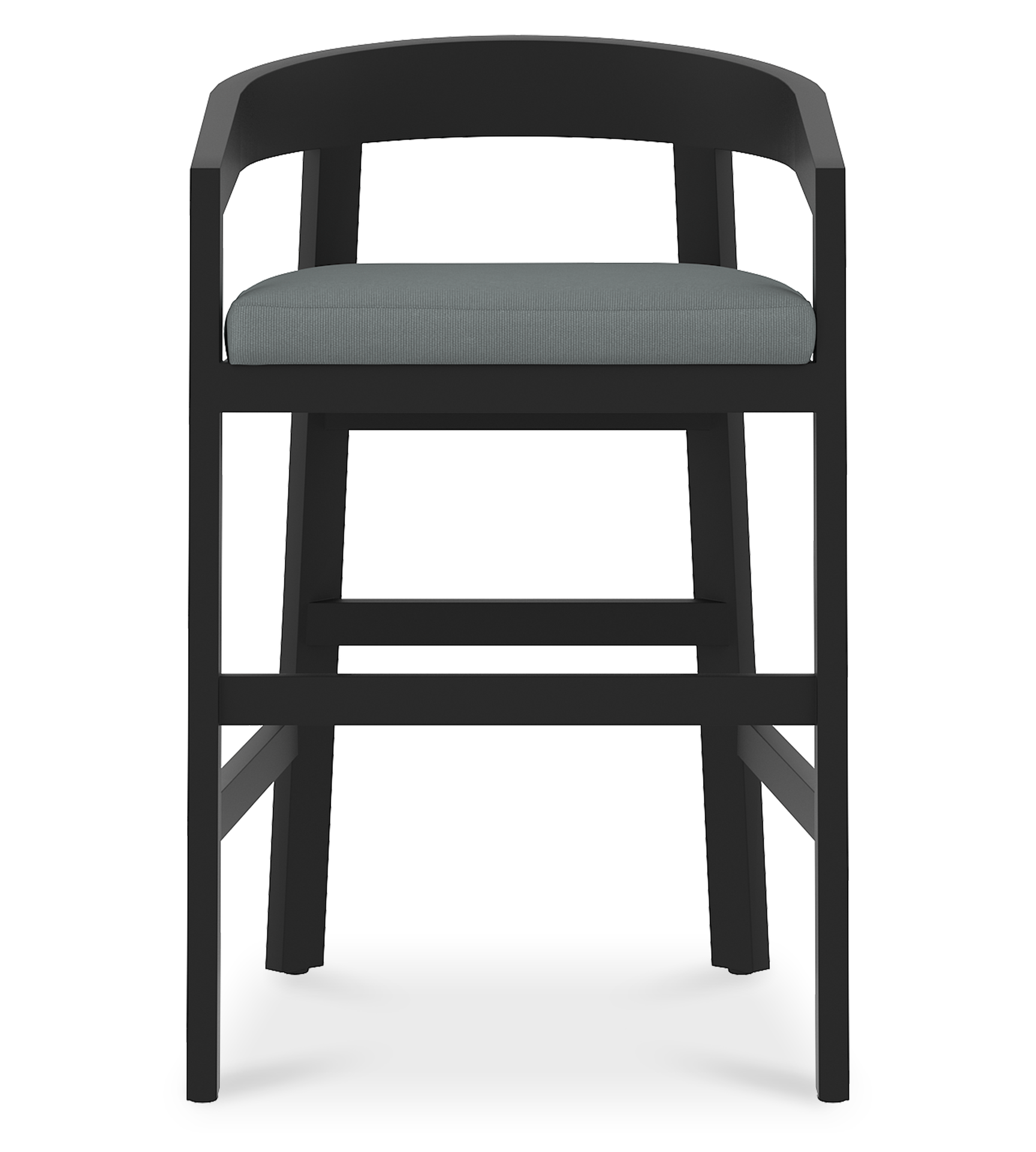 It shares the same ergonomic curves and scooped seat as its teak sibling, but swaps timber for a modern matte finish that's built for high performance. With sloped armrests, a supportive footrest, and a removable cushion, it brings comfort to every casual meal or sunset drink. Refined design, tough exterior, easy charm.