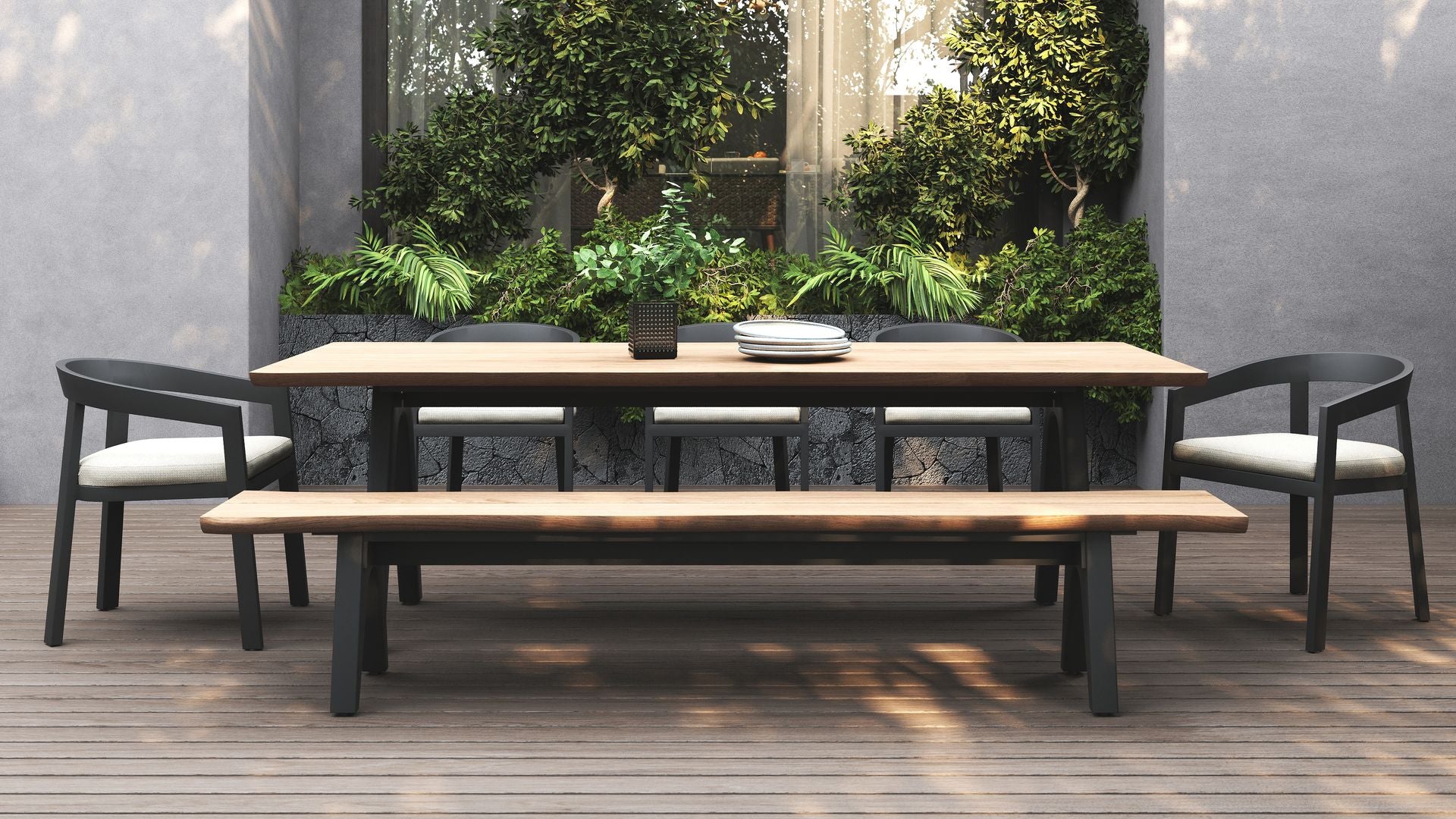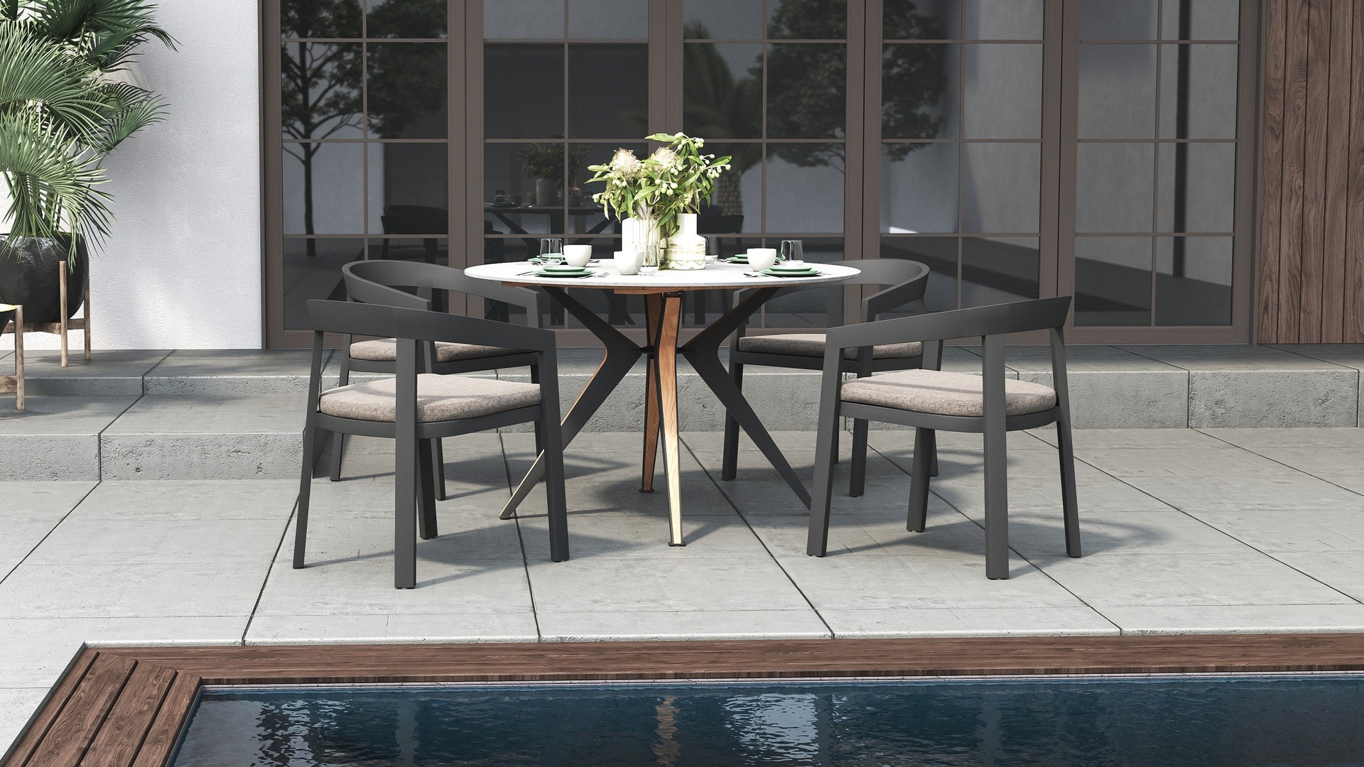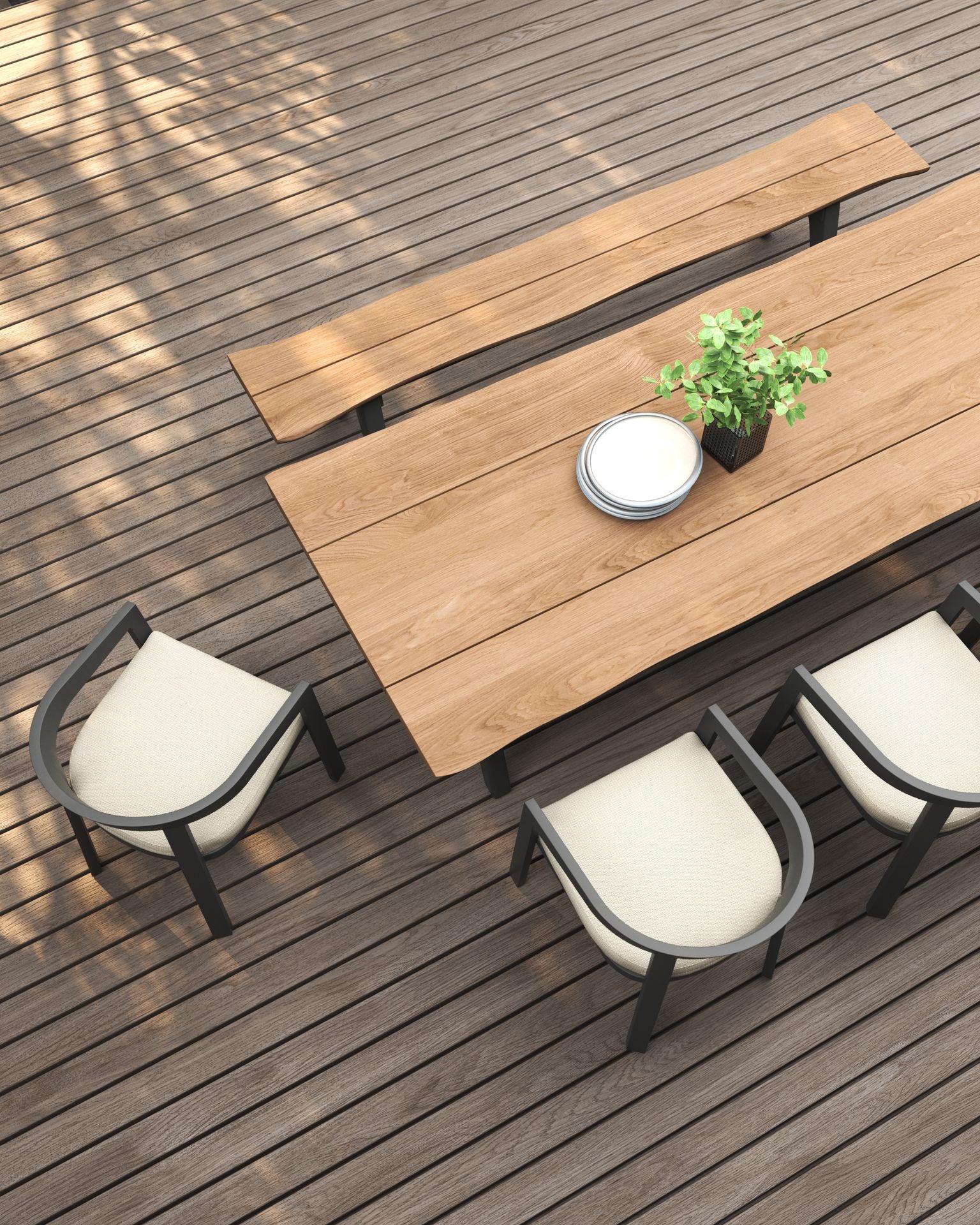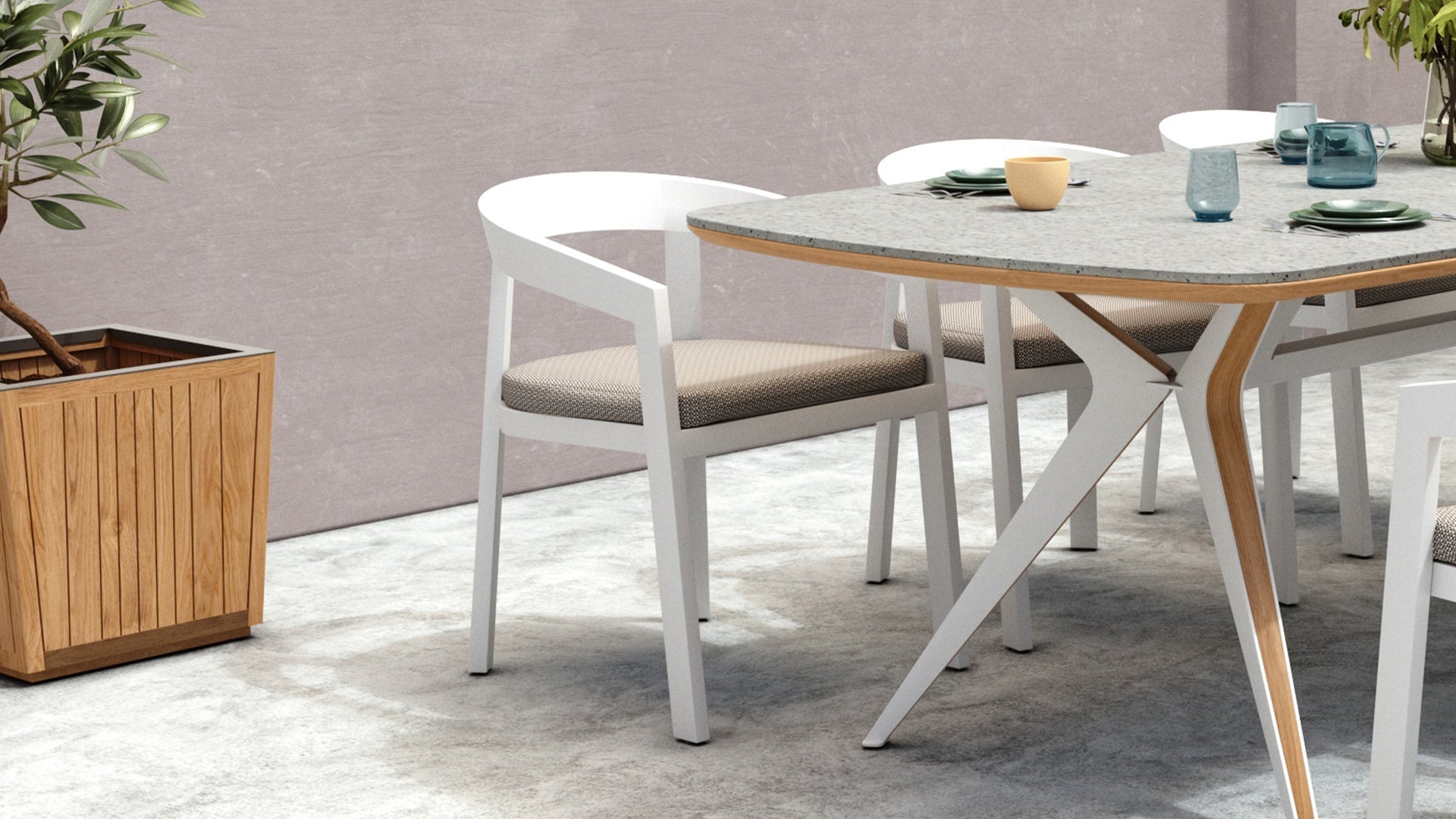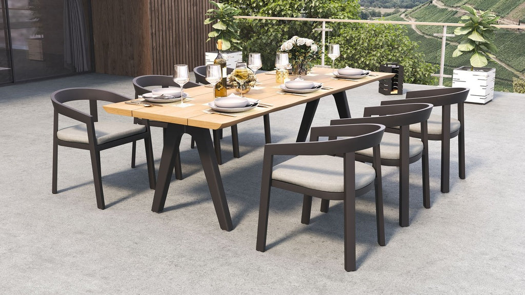 Sleek, sculpted, and ready for the elements. The vento alu dining chair pairs our signature curved design with a lightweight powder-coated aluminium frame, offering a crisp, modern silhouette built to thrive outdoors.