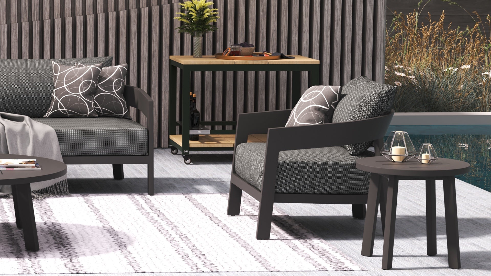 Sink into oversized cushions with removable covers that are easy to clean and designed for outdoor use. The crisp lines and minimalist silhouette make it an easy addition to any patio or poolside setting. Low effort, high reward.