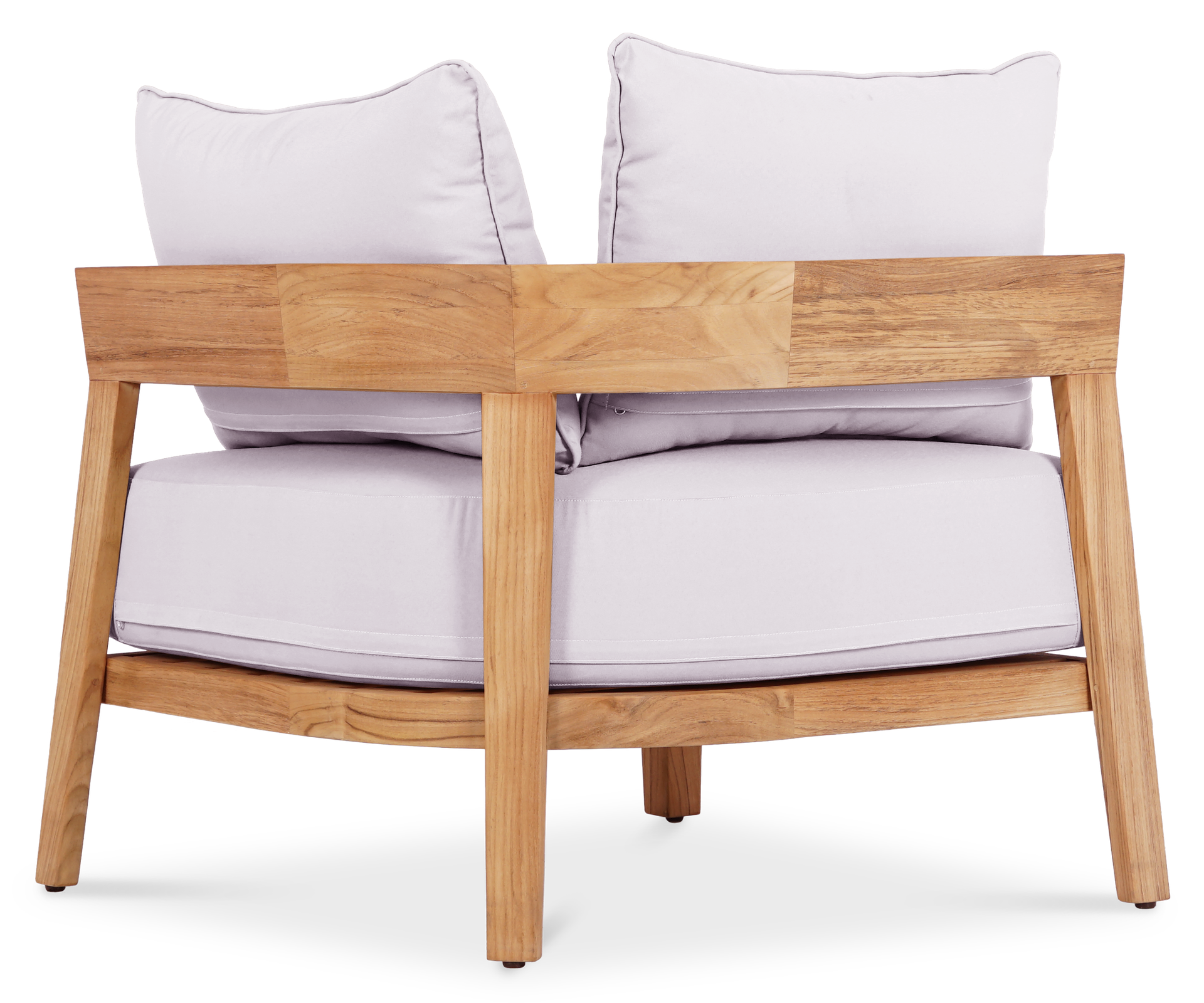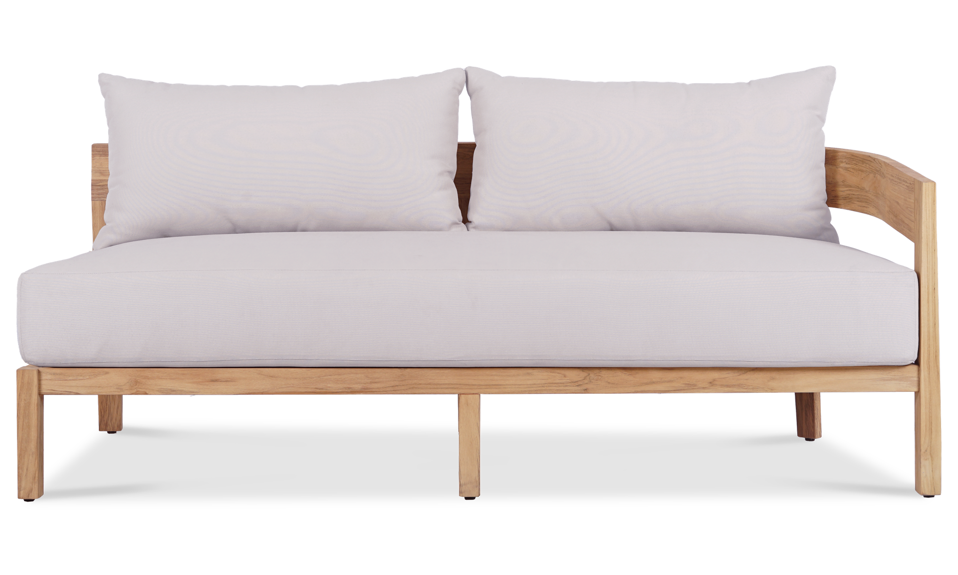Crafted from solid teak, each piece brings gentle curves and seamless joinery into focus, offering understated elegance with serious staying power. The plush, oversized cushions are upholstered in durable outdoor fabric, and their covers are removable for easy cleaning. A quick-change connector system and weather-resistant sling base make this sofa as practical as it is comfortable.