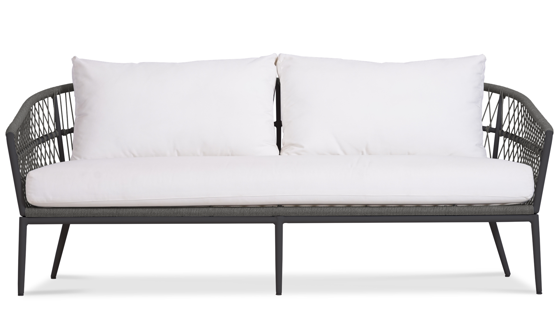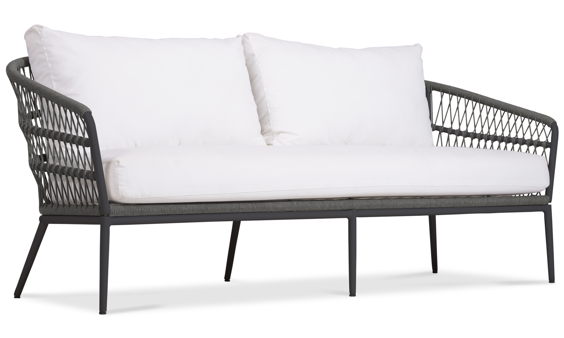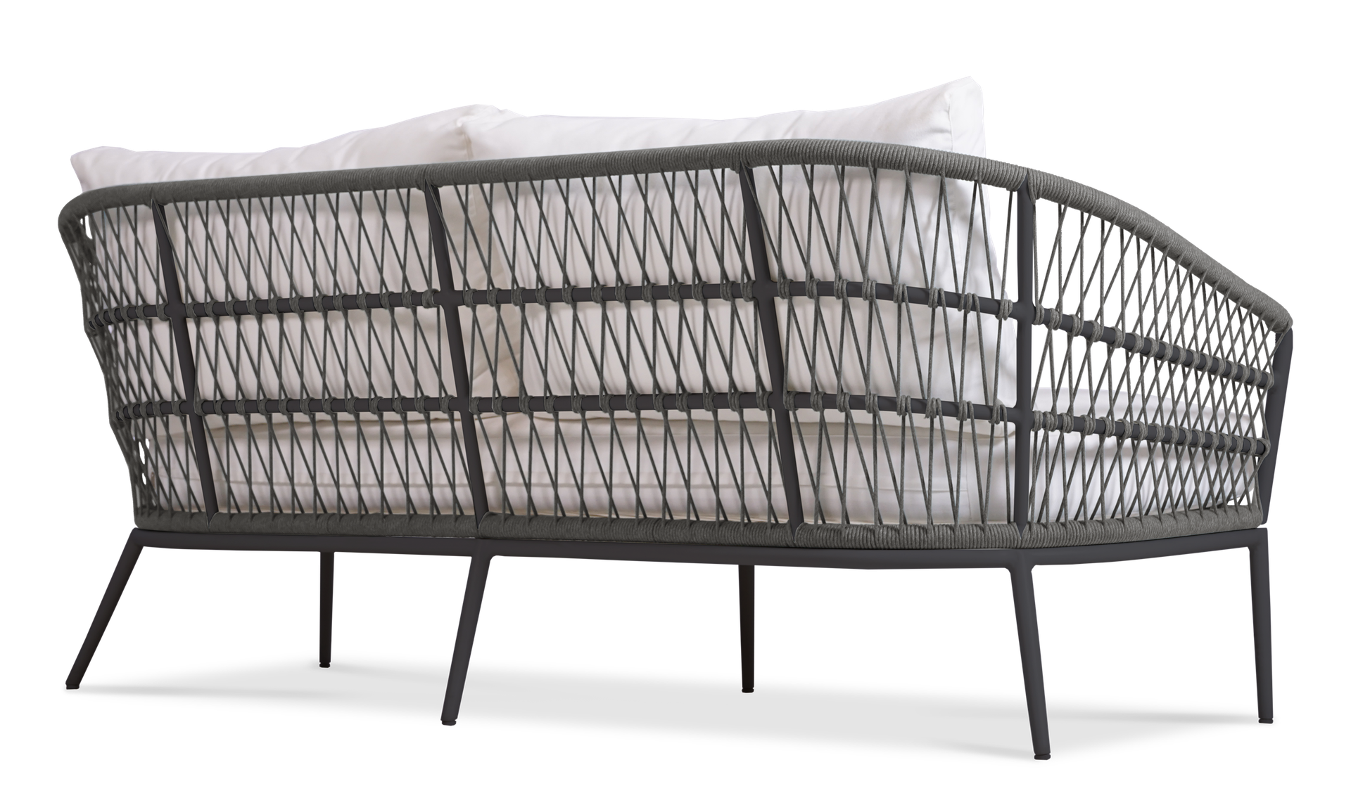 Designed for comfort and built to last, the vino sofa combines a powder-coated aluminium frame with rich olefin rope for a bold, modern outdoor look. The criss-cross weave adds texture and structure, while the gentle slope of the armrests and curved backrest provide an ergonomic shape perfect for relaxing. The UV-resistant rope retains its shape and colour without the need for washing, and the hardwearing frame is made to withstand the elements.